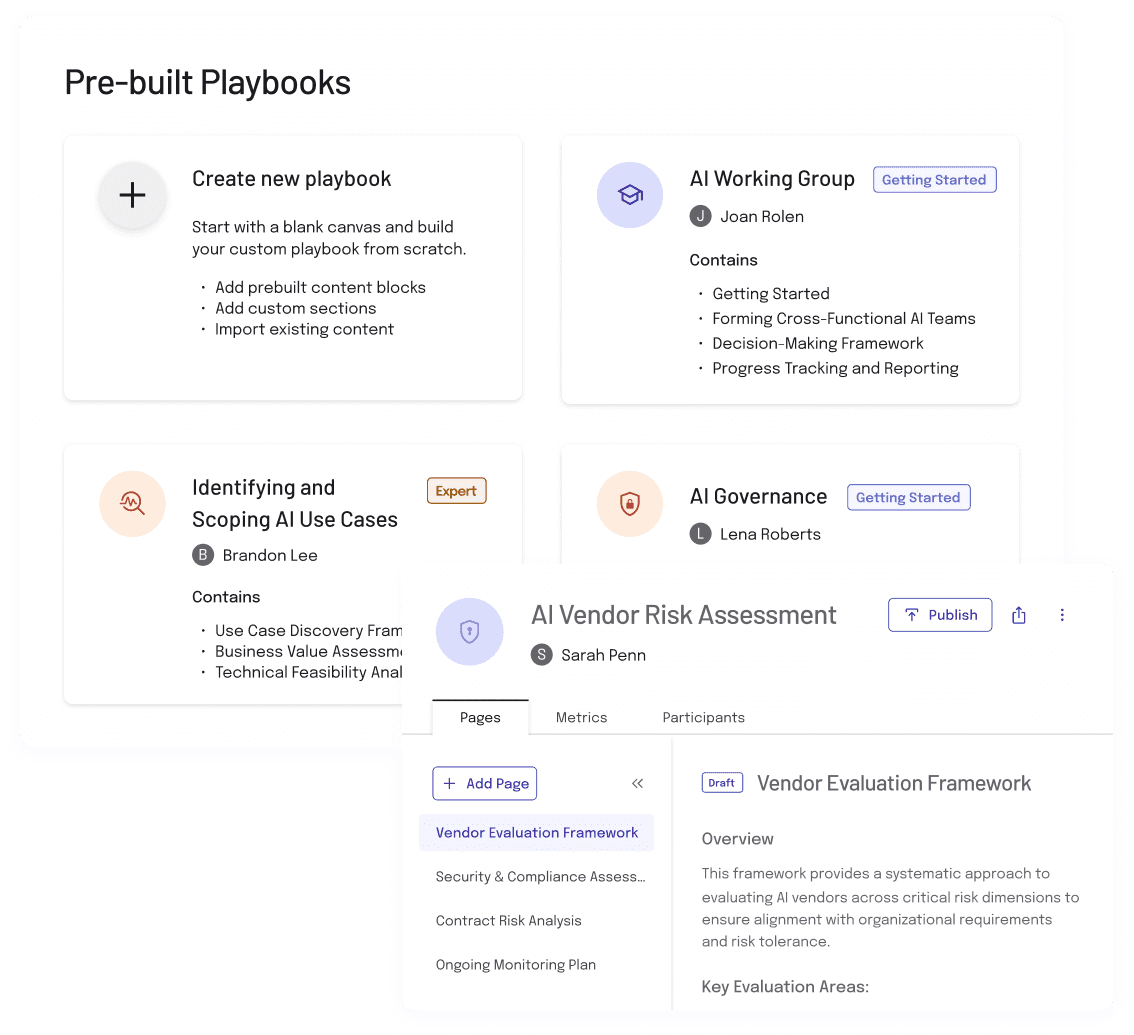 Proven frameworks, instant deployment. Build playbooks that drive collaboration and alignment across teams.