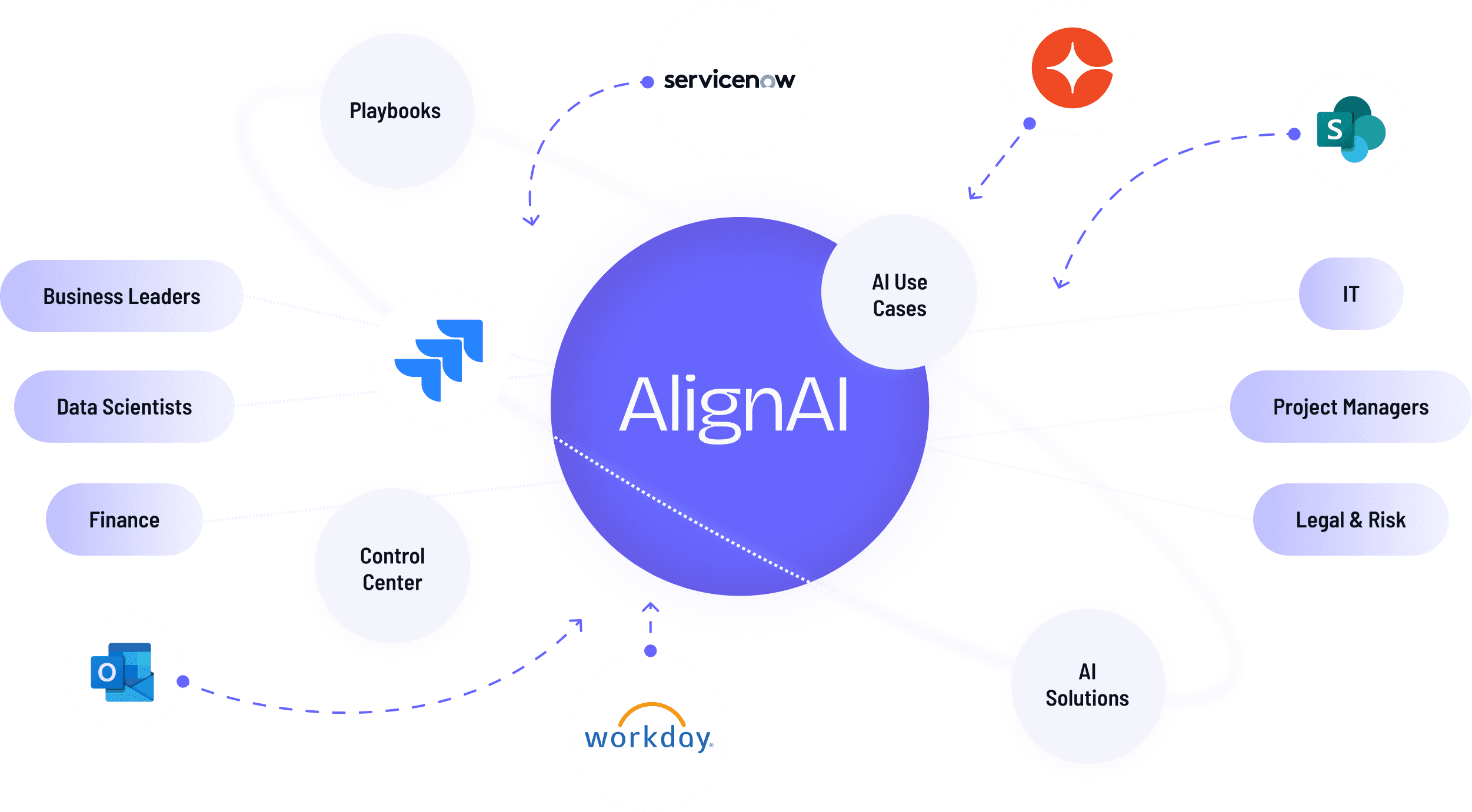 AlignAI doesn’t replace your workflow or data tools — it connects them. It acts as a shared layer across teams, tying together requirements, approvals, and performance signals so AI initiatives stay aligned and auditable.